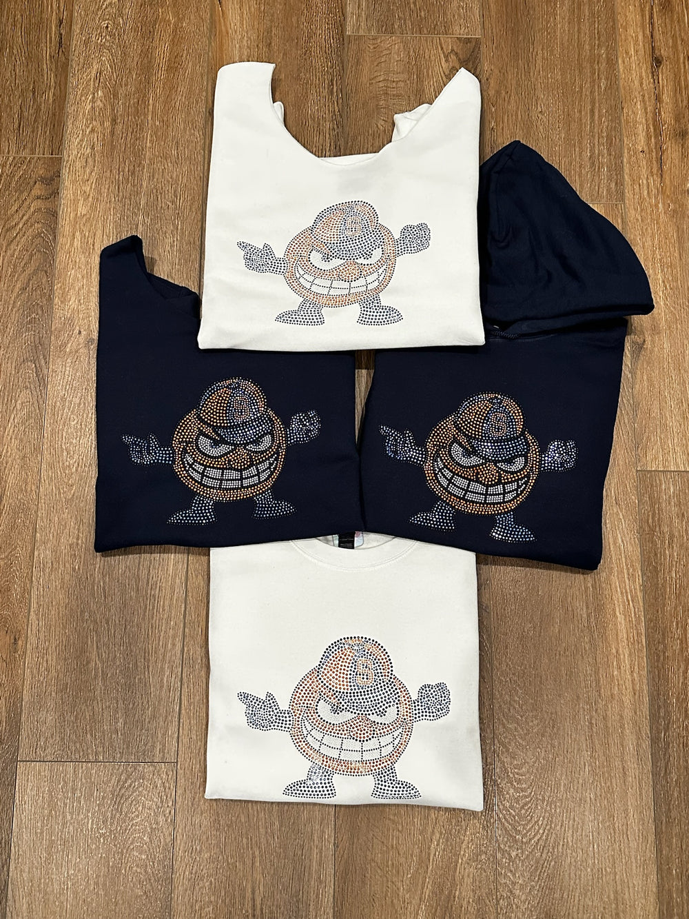 OUR BEST SELLING Rhinestone sweatshirts! The sweatshirts run true to size. The designs are heat-pressed and secured. All items are handmade and final sale.